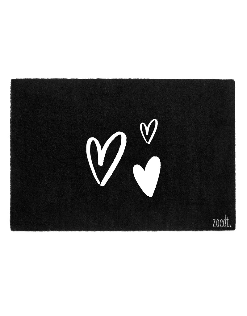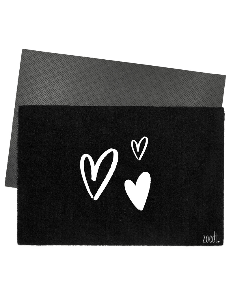 Deurmat zwart 40x60 cm – met hartjes — sfeervolle schoonloopmat met anti-slip | Zoedt