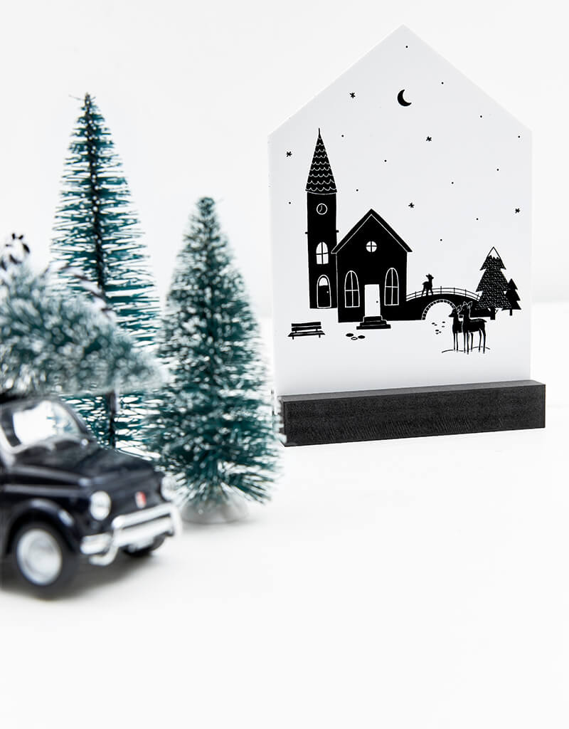 Dit mooie kerst huisje met tafereeltje is een leuk cadeautje om te geven of een mooie woonaccessoires voor jezelf. Zet verschillende huisjes bij elkaar, voor een leuk effect. Het huisje kan optioneel worden geleverd met de zwarte MDF-standaard.