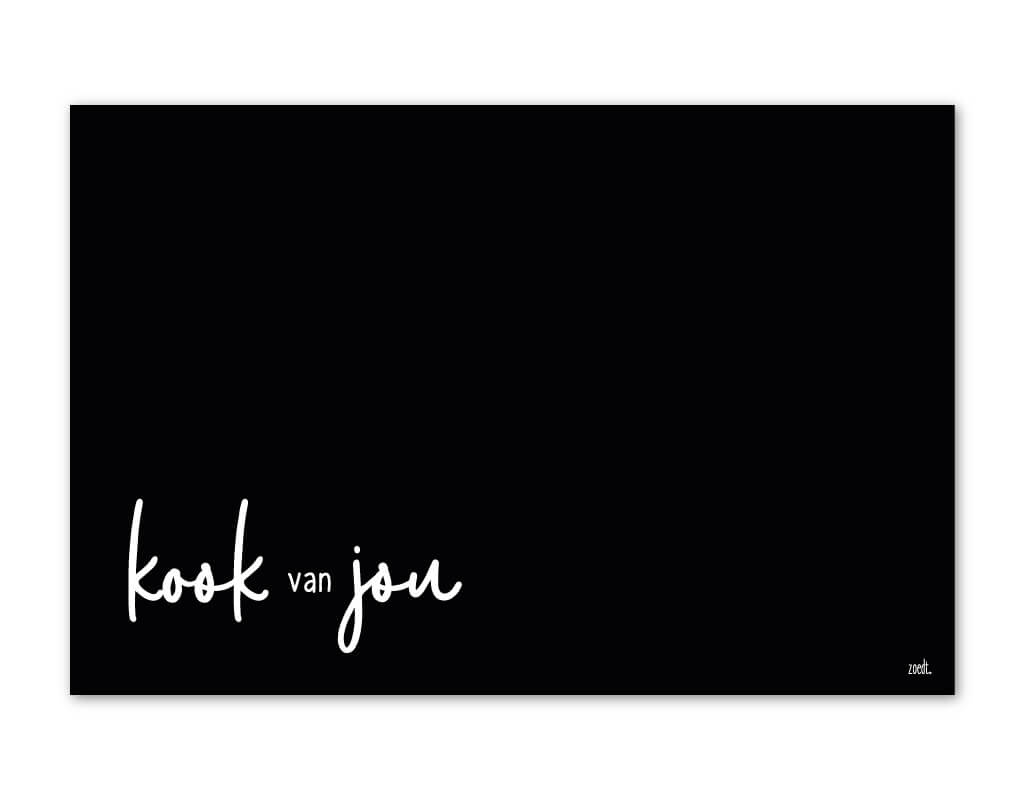 Inductiebeschermer - zwart met tekst 'Kook van jou' - WIT RANDJE