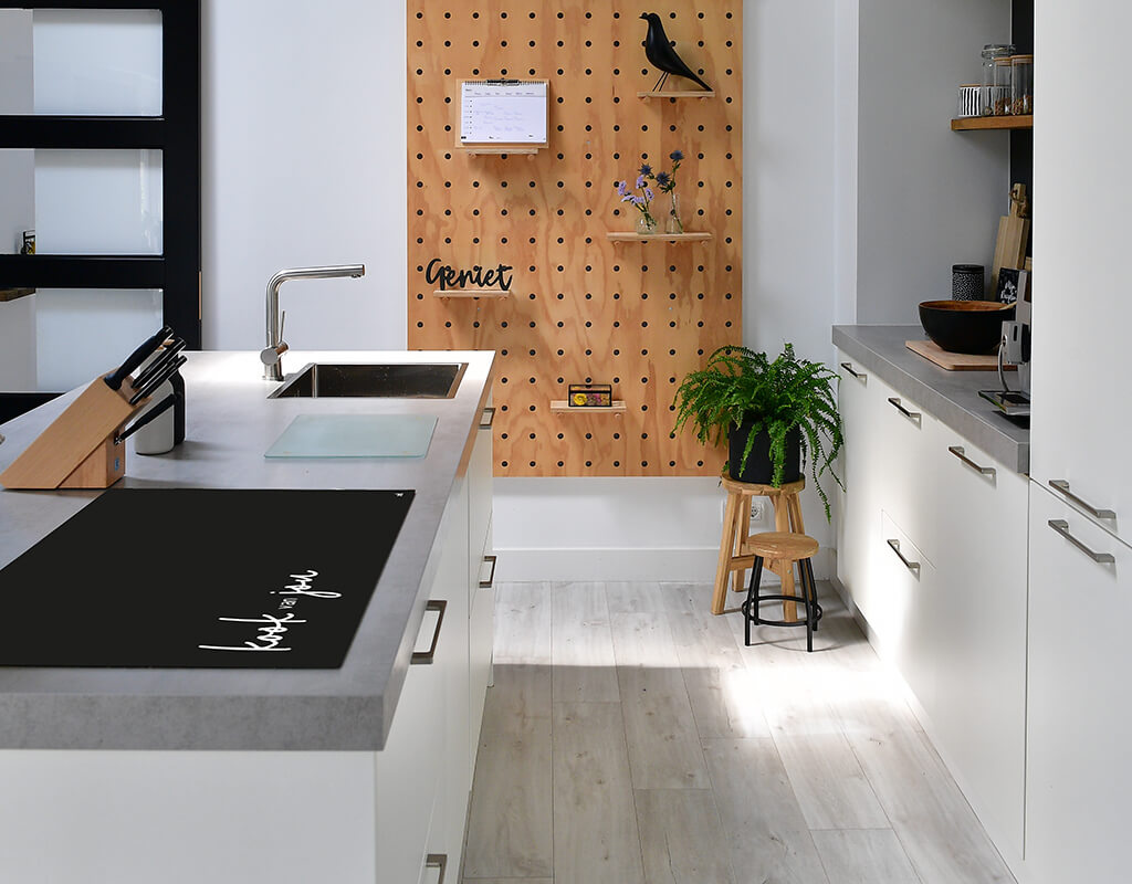 Deze zwarte inductiebeschermer staat niet alleen mooi, maar is ook nog eens heel praktisch! De inductiebeschermer beschermt jouw inductieplaat tegen krassen, vuil en stof. Maar met deze beschermer creëer je ook heel eenvoudig extra werkruimte op je aanrecht. En niet geheel onbelangrijk, het staat ook nog eens hartstikke mooi in je keuken.