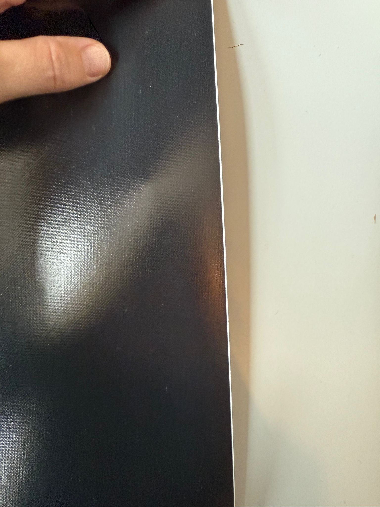Deze inductie heeft aan de zijkant een klein wit randje, zie foto's. Nog prima te gebruiken, eventueel kun je het randje eraf snijden/knippen.