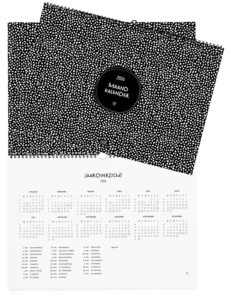 Maandkalender 2026 A3 – stijlvolle zwart-wit kalender van Zoedt