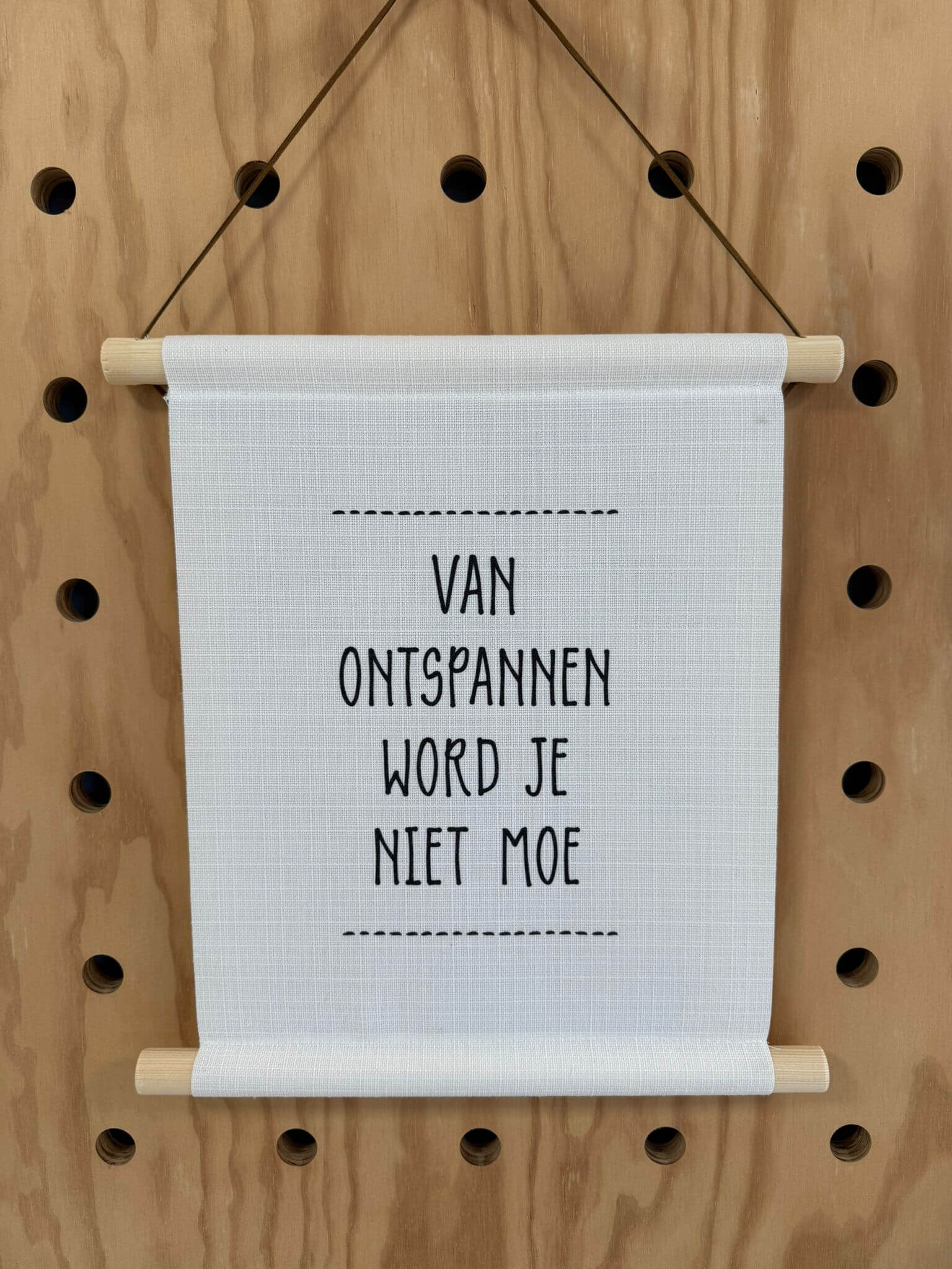 Magazijn sale - Textielposter 30x40cm 'Van ontspannen word je niet moe'